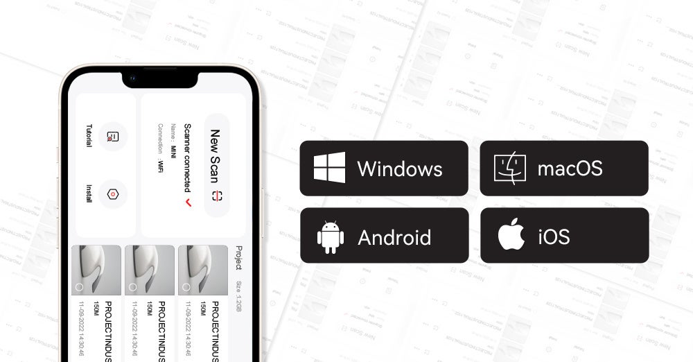「Revo Scan」はWindowsやmacOS、Android、iOSのすべてのOSで利用可能で、アプリが出力までの流れや操作方法をガイドするため初心者でも簡単に作業できます。stlやply、obj形式等で出力ができ、主要なプロ向けデザインソフトや、3Dプリンターとの互換性も有します。独自のワークフローに統合してモデリングを効率化します。