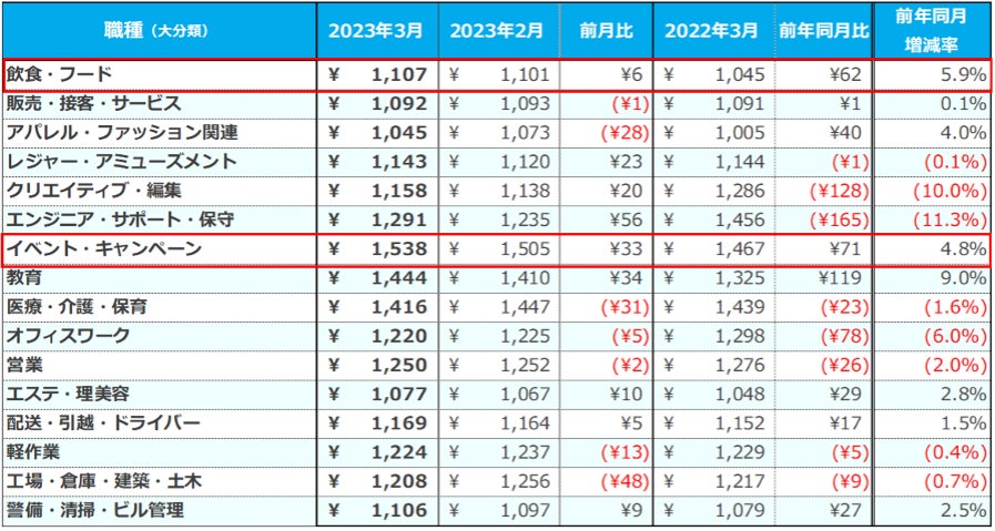 『2023年3月度 アルバイト・パート平均時給レポート』