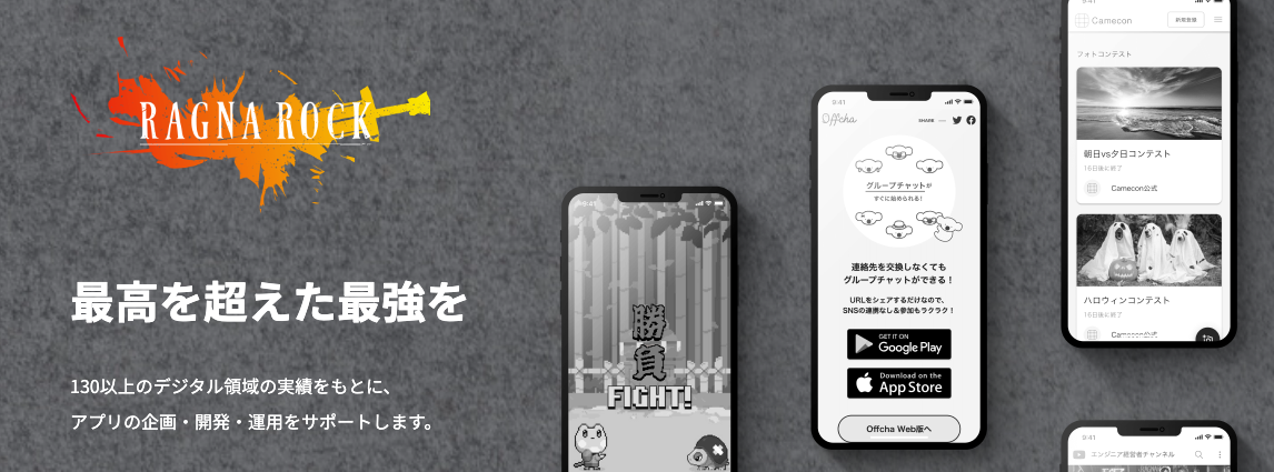 事業内容:AndroidやiOSアプリの制作や開発、技術のコンサルティング業を行っている。SNS交換なしで繋がれるチャットアプリ『Offcha』、反射神経ゲームアプリ『刹那』、気軽に誰でも参加できるフォトコンテストアプリ『Camecon』、URLを貼るだけのオンライン接客「CSmart(シースマート)」など様々なアプリやサービスを展開。