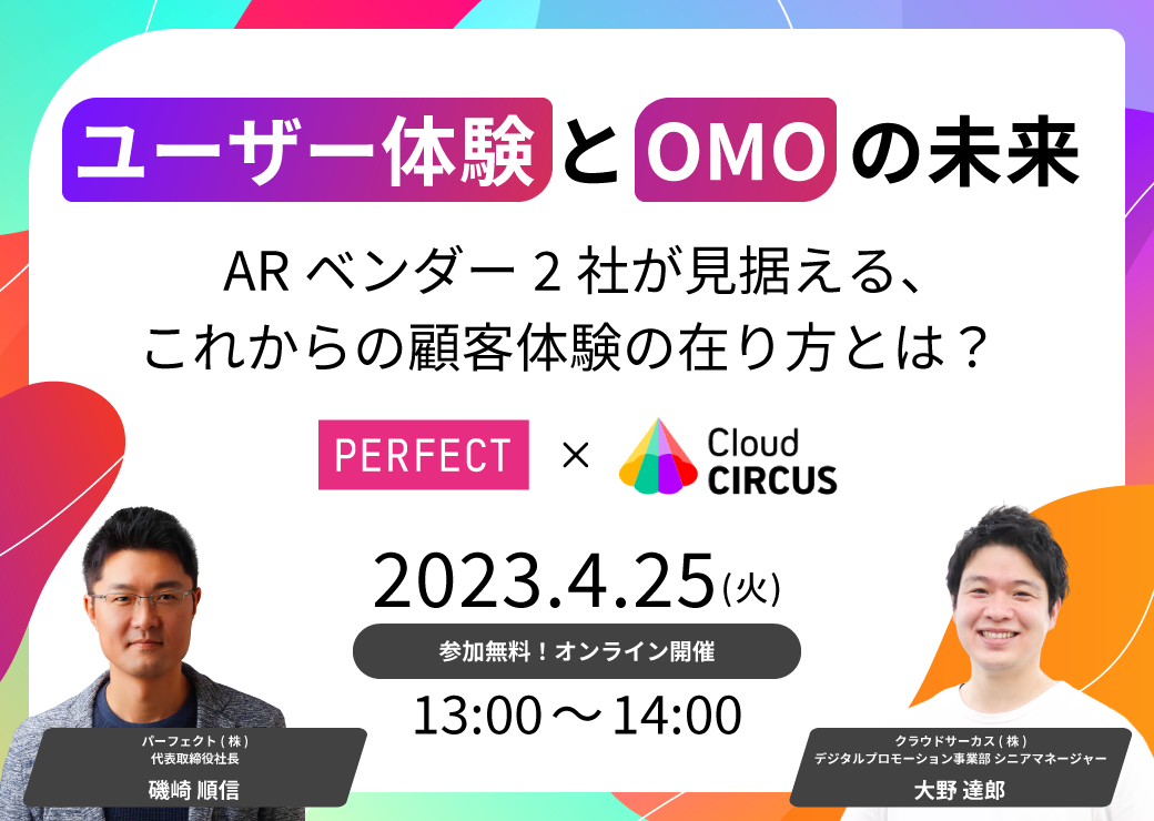 クラウドサーカスとパーフェクトは、「AR(拡張現実)」を活用した企業の販促プロモーション・DX支援のリーディングカンパニーとして、顧客のエンゲージメント創出・ブランドの課題解決を目指して、各種ツール/アプリを開発・リリースし、支援をしています。今回、顧客体験・エンゲージメント向上の施策を検討したい方や、ARを活用したプロモーションに興味がある方々に、有益かつ最前線の情報を届けたいという両社の思いから、本イベントの開催を決定いたしました。