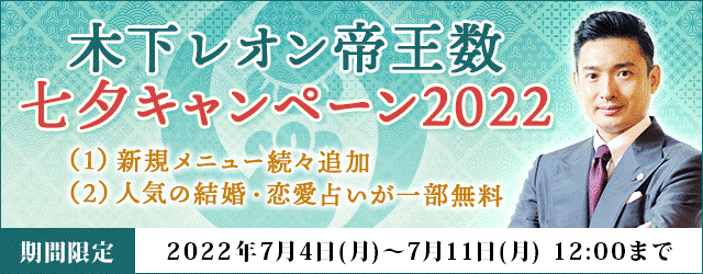 フジテレビ系列で放送中の占い番組『突然ですが占ってもいいですか?』で人気を博している木下レオン。この度、月額公式サイト『木下レオン◆帝王数』にて、『木下レオン帝王数 七夕キャンペーン2022』を公開中です。キャンペーン期間中、新規メニューを続々追加するほか、サイト内で人気の結婚・恋愛占いが一部無料で鑑定可能となっております。ぜひこの機会にご利用ください。