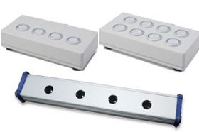 非接触でサイネージを切り替えるタッチレスボタンのほか、照光式4つボタンスイッチと非照光式8つボタンスイッチをラインナップしています。