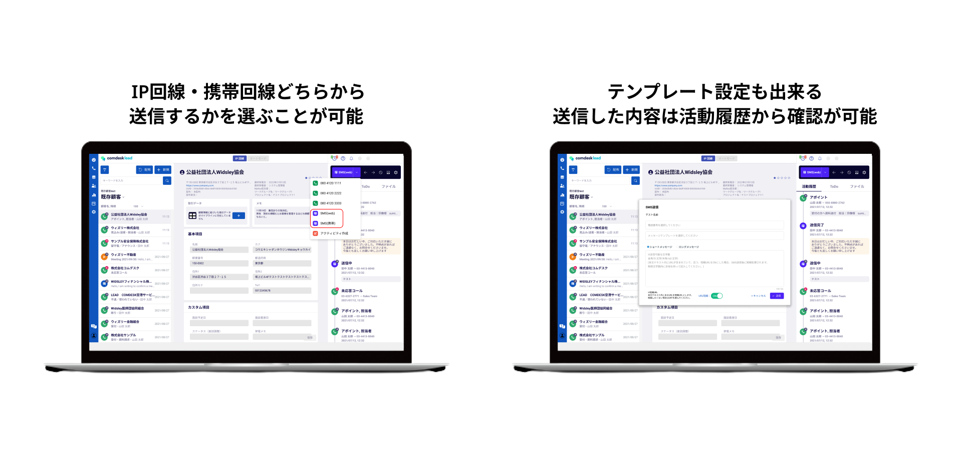今回の連携によって、ウィズリーが提供するCTIツール「Comdesk Lead」からIP回線・携帯回線どちらを利用していてもSMSを送受信することが可能になります。これにより通話のログだけではなく、メッセージのやり取りもログに残すことができ、「Comdesk Lead」をご利用いただくお客様に、通話だけでなくSMSでのコミュニケーションを選択いただけるようになりました。