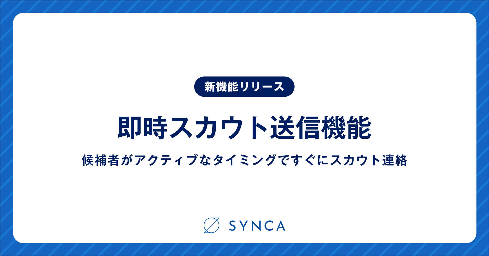 この度、ダイレクトリクルーティングサービスを運営する「SYNCA」に即時スカウト送信機能を追加いたしました。これにより、候補者へのスカウトメール既読率が10%以上アップしています。実際の応募者を待つだけでなく、興味・関心を持つターゲットに最適なタイミングでスカウトを送ることで人材の母集団形成を目指します。