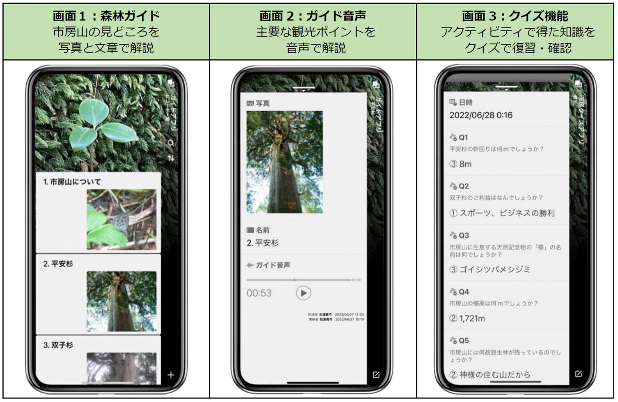 - Platioで作成した「市房自然体験アプリ」を用いた実証実験の概要