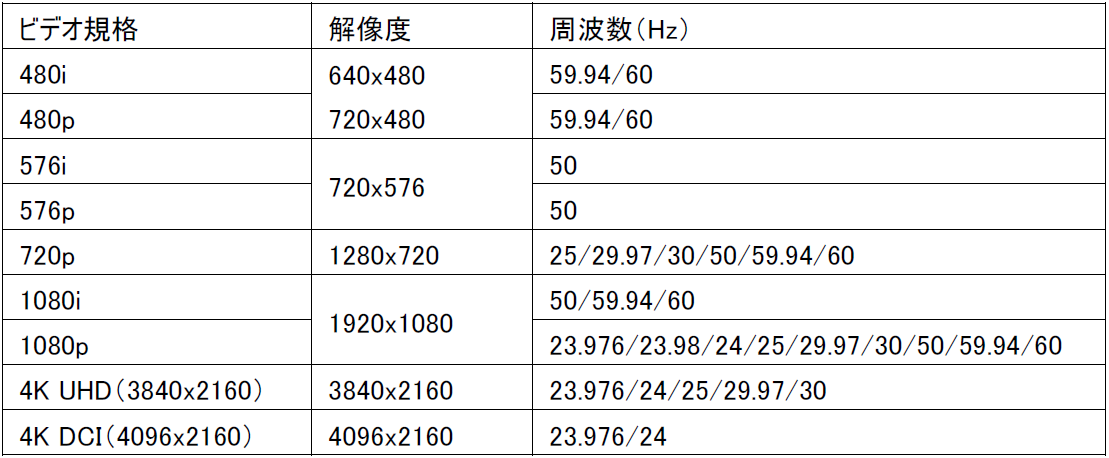※HDRは非対応です。※HDCP2.2は非対応です。※Y.Cb.Cr4:2:0は非対応です。※4Kは8bitのみ対応です。