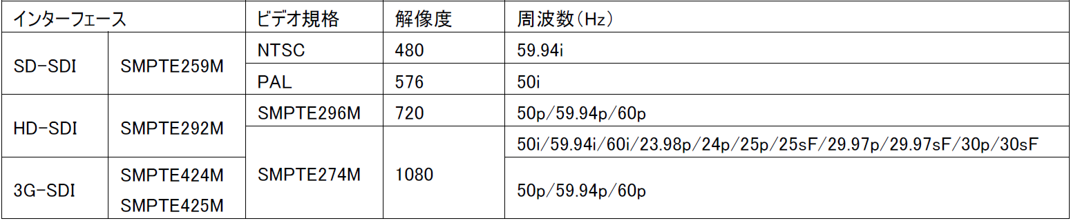 ※YCbCr 4:2:2のみ対応です。※3G-SDIはLevel A/B対応です。