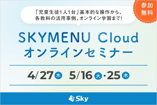 実際の授業を想定した活用シーンに合わせて「SKYMENU Cloud」の操作をご体験いただけるセミナーです。操作方法や活用場面などに関するご質問も承りますので、ぜひお気軽に「SKYMENU Cloud」をご体験ください。