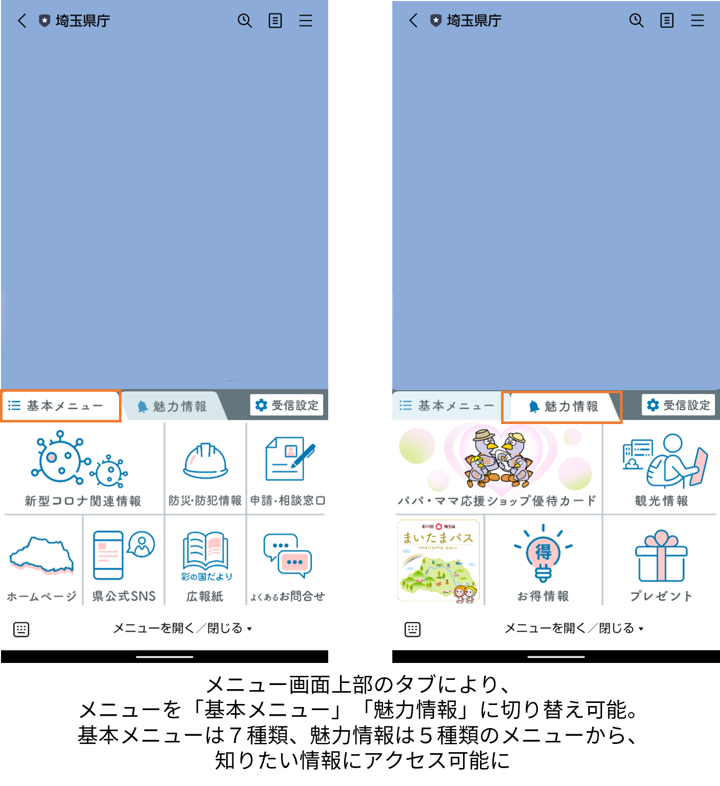 図4 埼玉県LINE公式アカウントのリッチメニュー