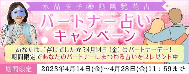 テレビ番組「ゴゴスマ」「ダウンタウンDX」出演で話題の占い師「水晶玉子」が月額公式サイトで、『パートナー占いキャンペーン』を公開いたしました。あなたの恋愛、仕事、結婚のパートナーに関する占いを期間限定でプレゼントいたします。この機会をお見逃しなく!