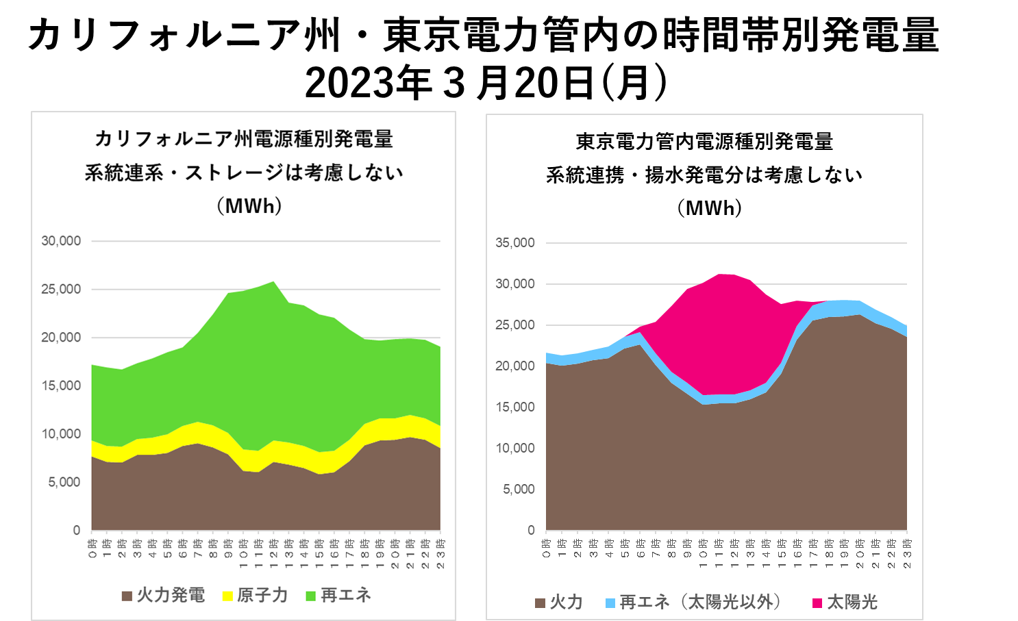 現在、東京電力管内では、原子力発電所の再稼働が見通せない一方で、他地域に比較して再エネ導入も遅れており、老朽化しつつある石炭火力に依存するいびつな電力システム構造となっており、電気料金が関西電力管内の2倍近くにまで高騰し、夏冬の需給逼迫時には常に停電リスクが生じ、しかもCO2濃度(Carbon Density)がカリフォルニアの2倍以上という危機的な状況にあります。