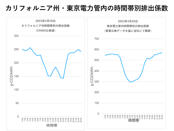 そこで、近年では、例えば米国カリフォルニア州では、規制当局(カリフォルニア独立系統運用機関(CAISO))が5分毎の時間帯別排出係数を正確に算定し、リアルタイムで公表するようになりました。また、欧州でも、時間帯別排出係数を用いて域内企業や消費者のCO2排出量を正確に算定する取り組みが広がっています。