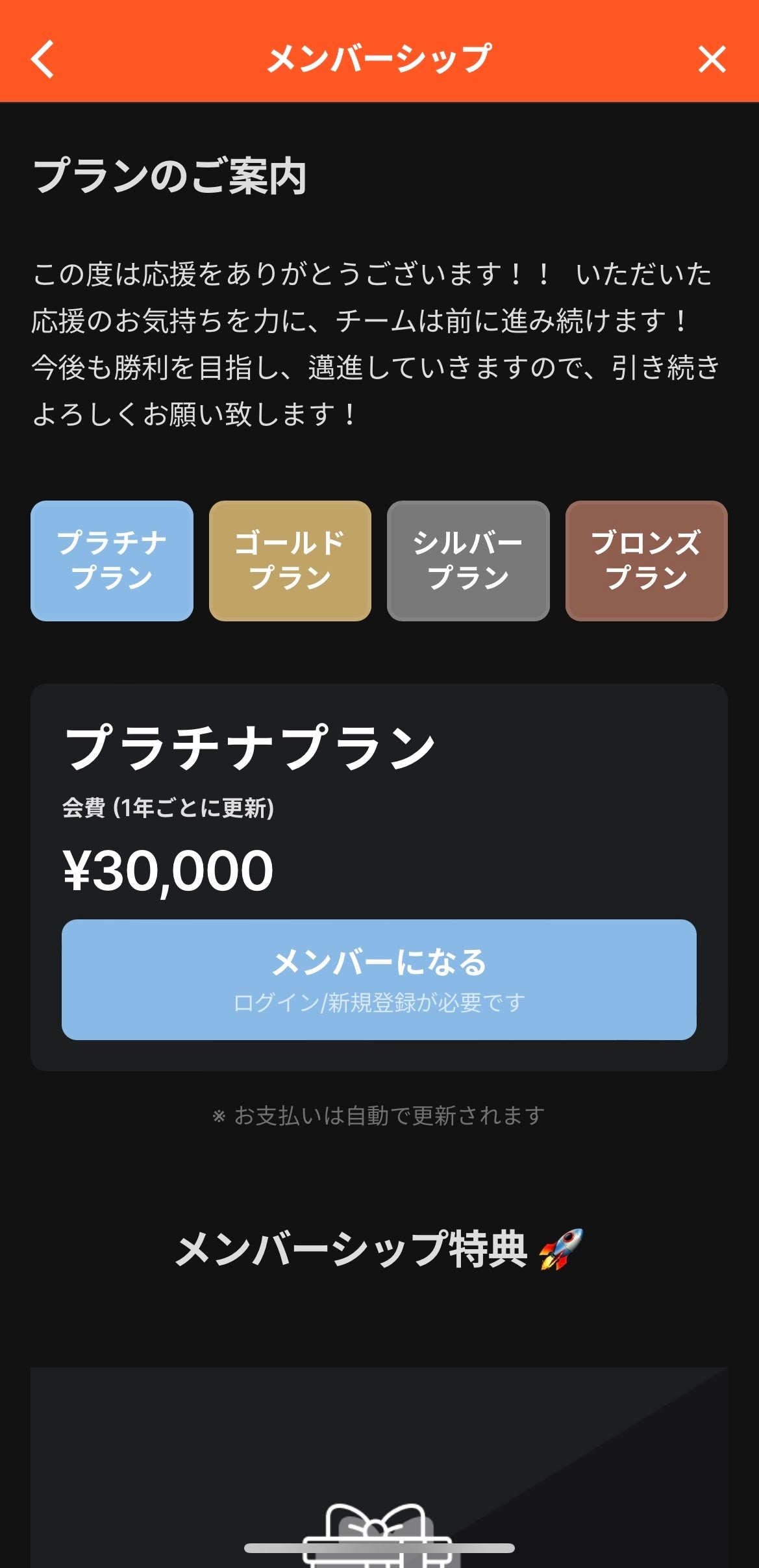 メンバーシップ機能からファンクラブ会員になって頂くと、チームから特別なグッズをお届けします!