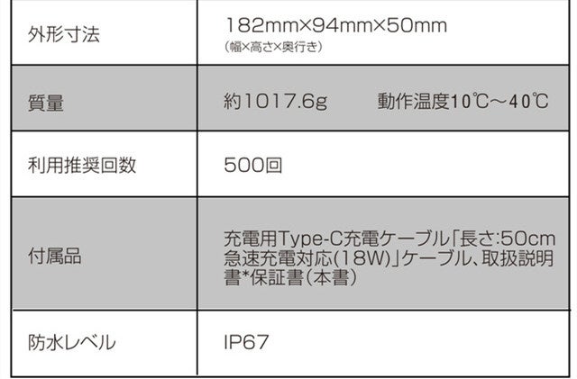 V18超大容量バッテリーの防水❘防塵規格は「IP67」です。