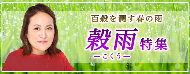 4月20日から、二十四節気は春の終わりの節気「穀雨(こくう)」に入ります。「百穀春雨(ひゃっこくはるさめ)」という言葉から来ていて、地上にあるたくさんの穀物に、たっぷりと水分と栄養がため込まれ、天からの贈り物でもある恵みの雨がしっとりと降り注いでいる頃のことです。天からのパワーを受け取ってこれからの季節を元気に過ごすために…この特集では大串ノリコの人気鑑定を厳選致しました。この機会にぜひ占ってみてくださいね。