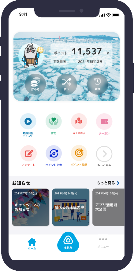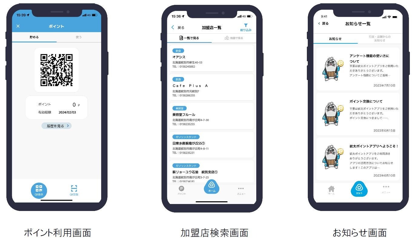 「紋太ポイントアプリ」の機能について