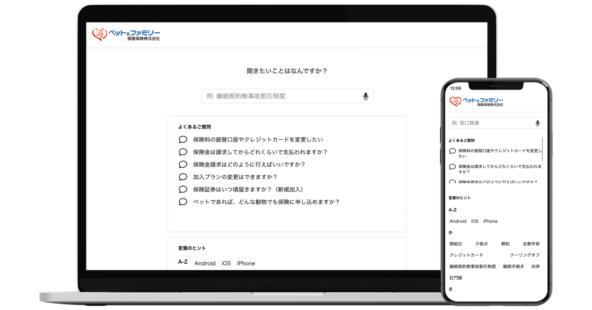 このたび、ペット&ファミリー損保のサービスご利用者から寄せられる問い合わせへの効率的な対応、そしてご利用者自身が疑問を解決できる体制構築に向けて、FAQの充実化・インターフェースをアップデートするべく効果検証を開始いたしました。