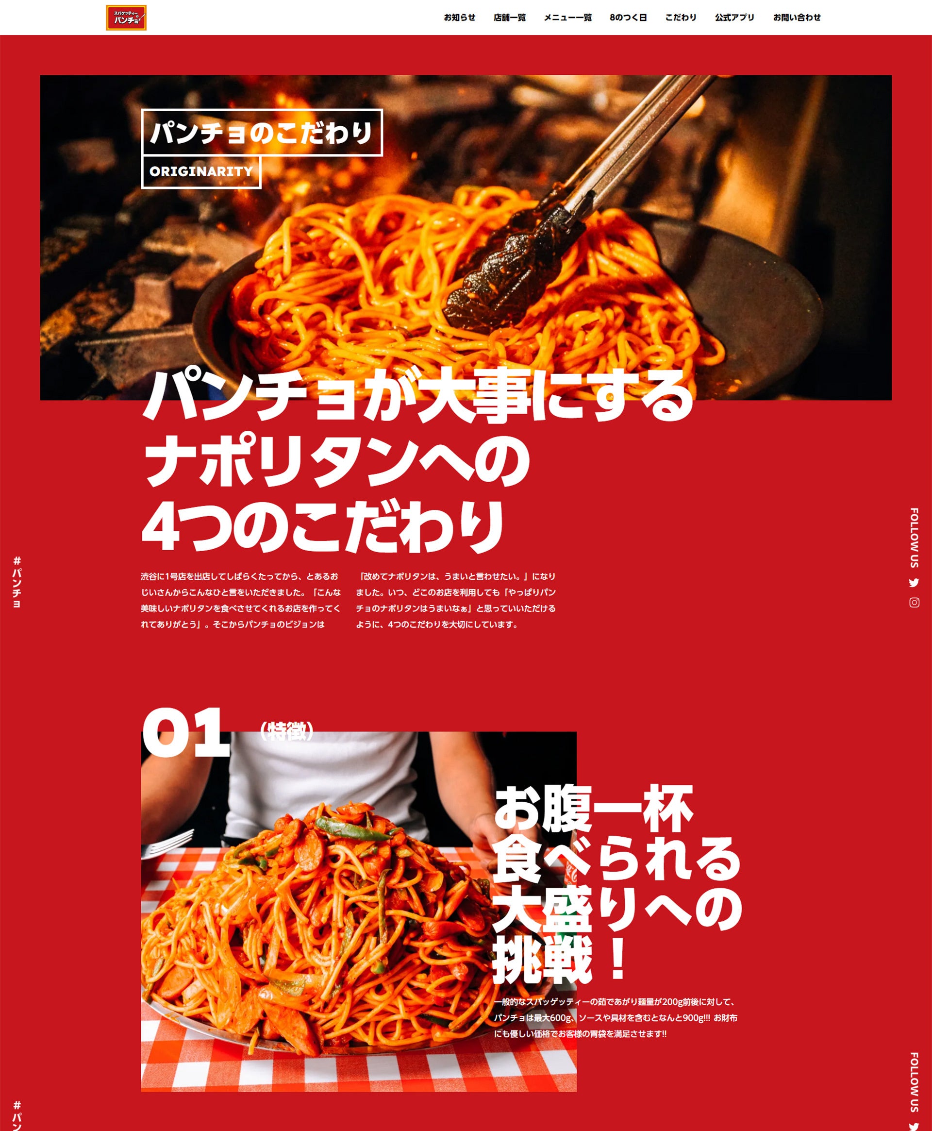 パンチョのこだわりや特徴のページも新設し、店舗にいらっしゃる前でもパンチョの魅力を知っていただけるようになりました。