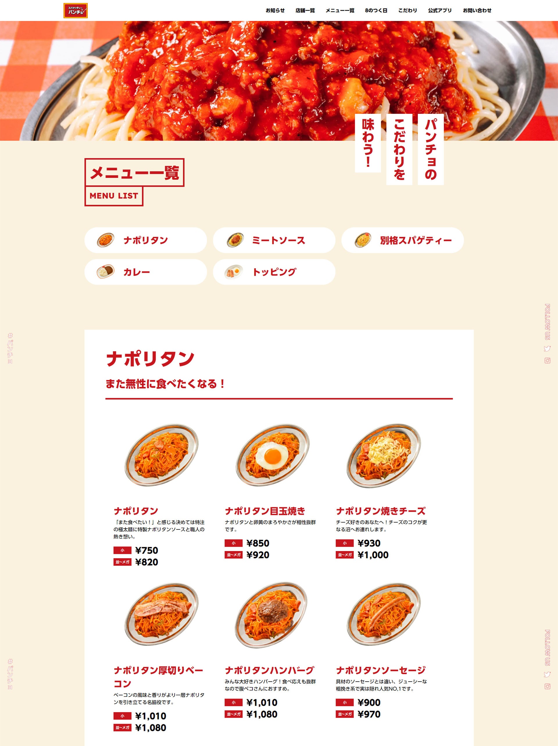 この度、スパゲッティーのパンチョを分かりやすく表現した公式ホームページにフルリニューアルしました。