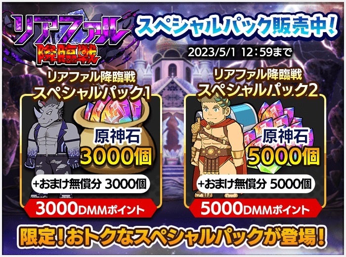 イベント期間中、原神石がおトクに購入できる「リアファル降臨戦スペシャルパック」が2種登場!