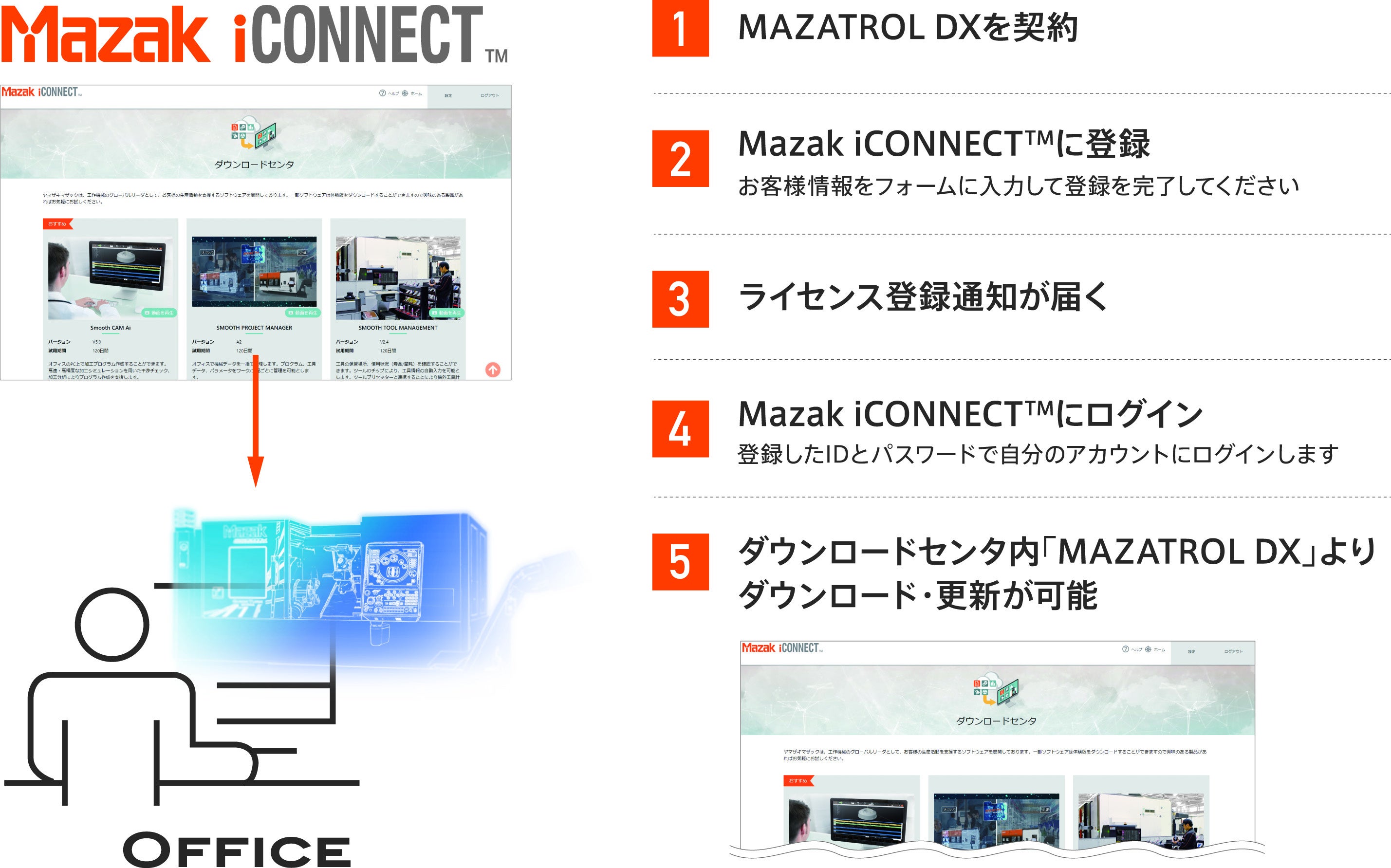 「MAZATROL DX」は、Mazak iCONNECTTM *1から簡単にダウンロード・更新が可能です。
