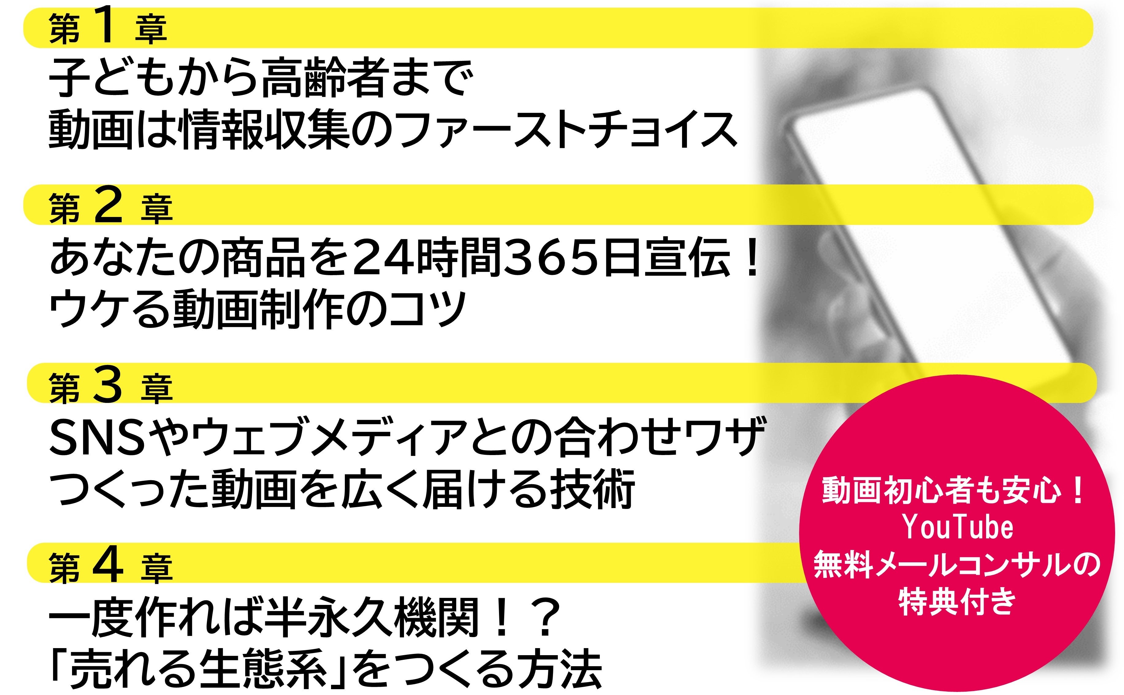 『これからの集客はYouTubeが9割』の著者が、今度は「確実に収入を得続けるための動画づくりの方法」を紹介していく。