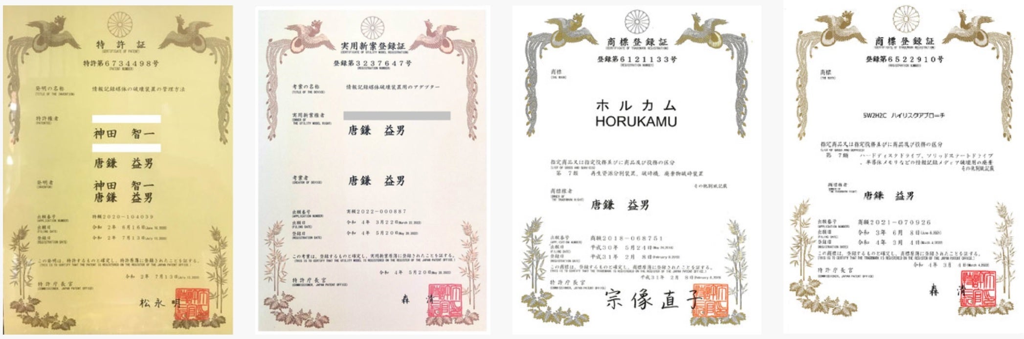 3.物理破壊装置の運用管理、国際特許取得 特許番号:第6734498号(日東ホルカム))