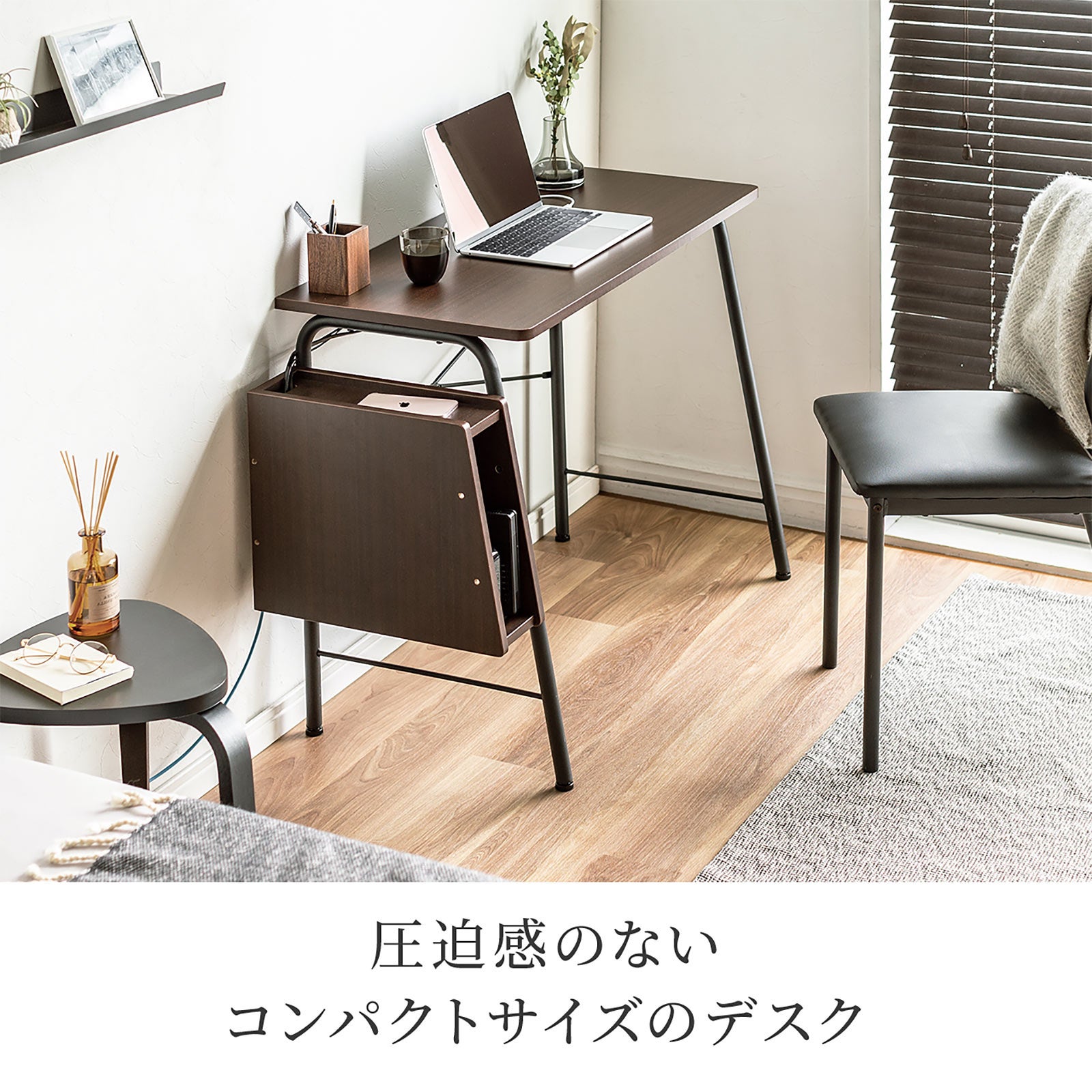 リビングの片隅やワンルームのお部屋に置きやすいサイズ感です。デスクの左右どちらかに装着できるルーターボックス付き。ルーターや外付けHDDなどの周辺機器や書類などを収納できます。
