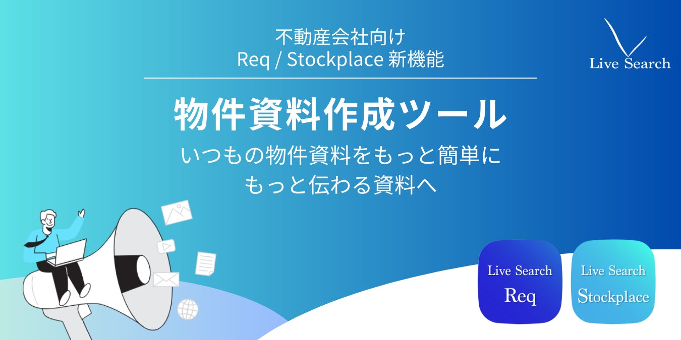 不動産会社では、物件情報の共有や宣伝のために「物件資料」を使用するシーンが多くあります。例えば、・来客への物件紹介時、・店舗への興味を惹くための店頭広告、・業者間での空室情報の共有、などが主なシーンです。これらの物件資料は各不動産会社が空室毎に作成しており、その作成も不動産会社スタッフの業務の一部となっています。リブ・サーチではその業務をもっと効率的に、かつ実用的な資料を作成できるためのツールを開発しました。この機能はリブ・サーチにて提供している以下のいずれかのサービスをご契約中の企業様なら追加料金なしで無料ツールとしてお使いいただけます。
