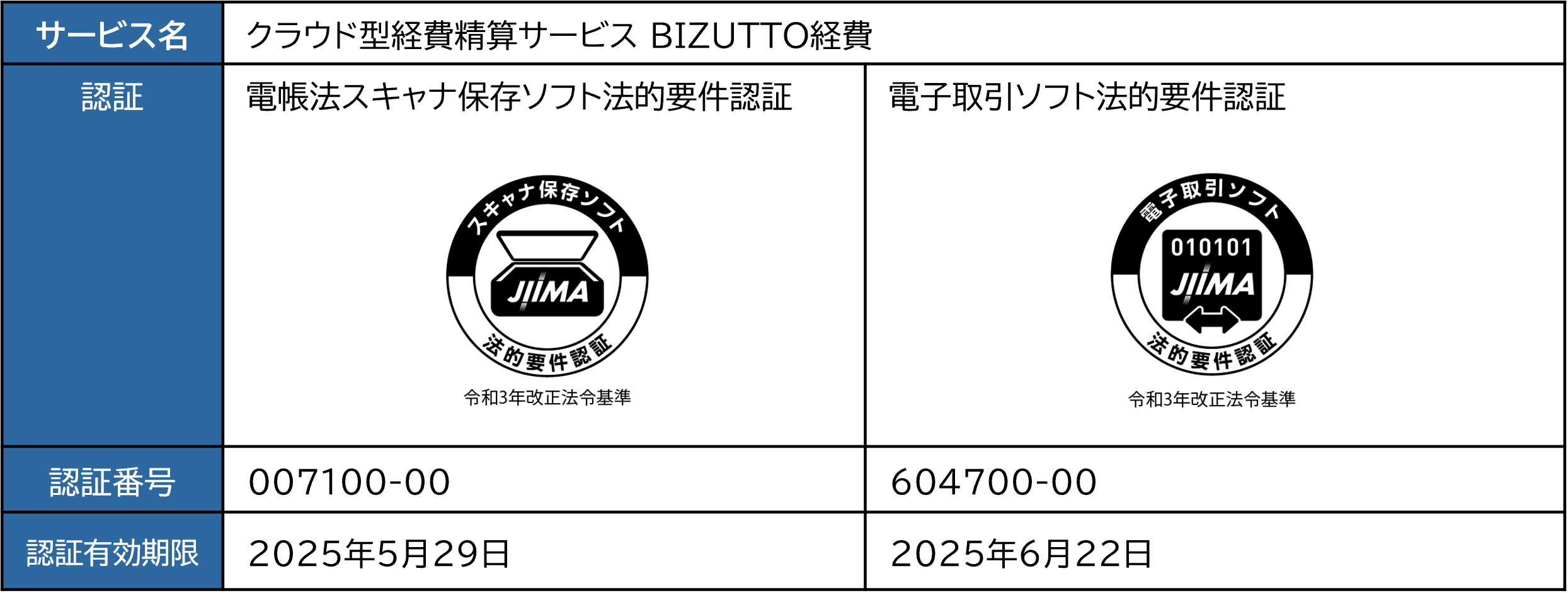 ALSIでは、電帳法に対応しているBIZUTTO経費をお客様に安心して導入・利用してもらえるようにこのたびJIIMA認証を取得しました。