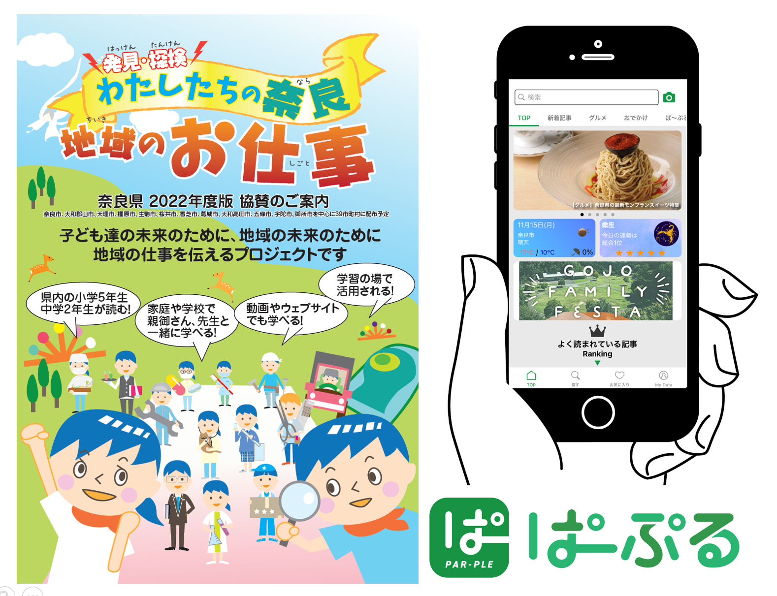奈良に暮らす人と街をつなぐタウン情報「ぱーぷる」を中心とするメディア運営を行うエヌ・アイ・プランニングは、2019年度から小学校5年生と中学校2年生向けに、地元の企業やお仕事を紹介する教育の副読本としてキャリア教育授業でも活用されている「発見・探検 わたしたちの奈良 地域のお仕事本」を制作してきました。それら地域独自ネットワークと媒体編集力を活かし、県内就職率を上げ、自身の進路について考える時期の高校生に向けた冊子制作についても着手することになりました。一方でジンジブでは、高卒採用を行う企業の求人情報をWebサイトやアプリに掲載した高校生のための求人情報メディア「ジョブドラフトNavi(https://job-draft.com/ )」を運営し、掲載エリアを拡充することで高校生への支援を全国へ広げています。そこで、奈良県内での県内就職率を高めるため、ジョブドラフトNaviを奈良県内で広めることが、地域の就職活性化につながると両社で一致し、この度の業務提携にいたりました。