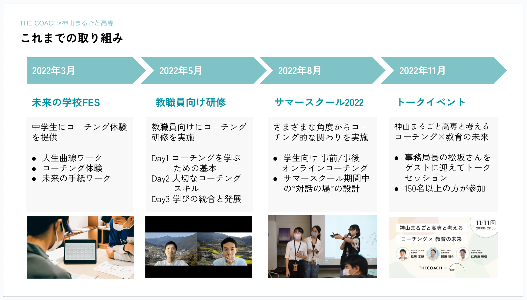 2022年3月4日、THE COACHと神山まるごと高専は、コーチングを通じたより豊かなキャンパスライフを目指し、連携することを発表しました。