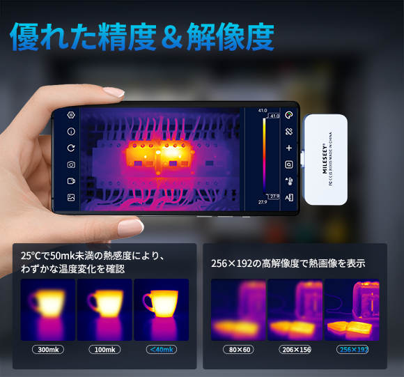 「MILESEEY TR256i&TR160i」は肉眼では見えない温度分布を高精度で観察可能なコンパクト赤外線サーモグラフィカメラです。