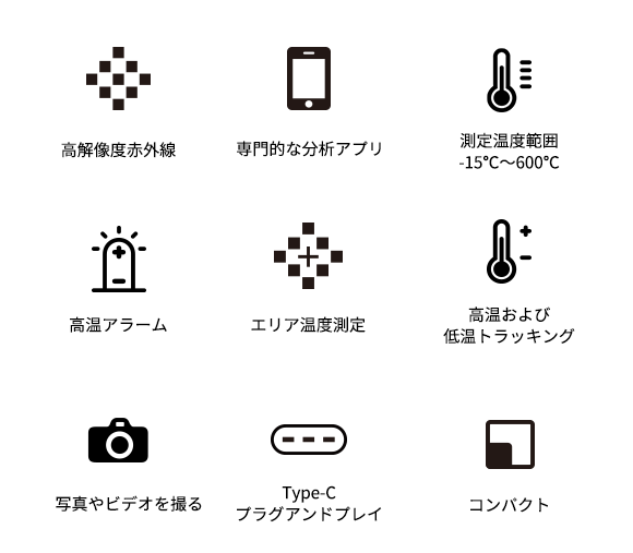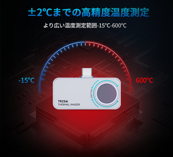 -15℃~600℃(精度± 2℃ or 2%)までの温度観測ができ、対象物表面の温度を瞬時に正確な数字で表してくれます。