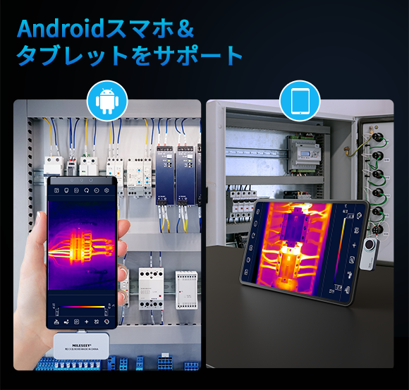 充電や電源の接続は一切不要、複雑な設定はなし。Android(Type-C)スマホ、タブレットに接続し、アプリを開くだけで本製品の起動ができ、熱画像の確認ができます。