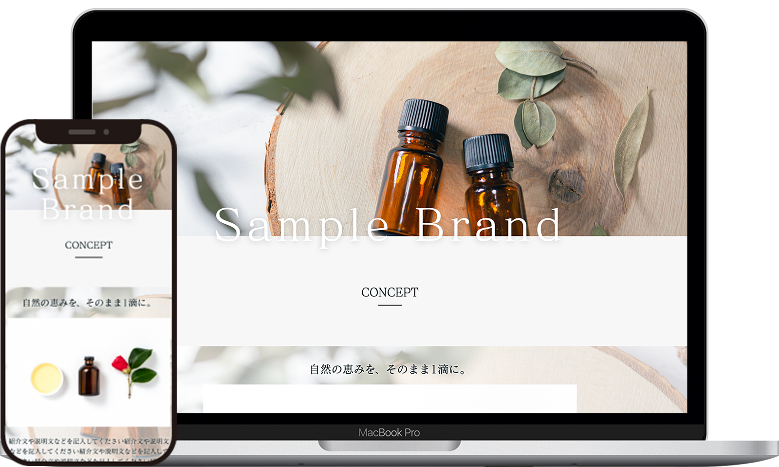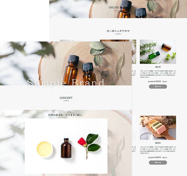 ブランドの商品紹介やコンセプトの紹介に使用できるサイト作成用テンプレートです。