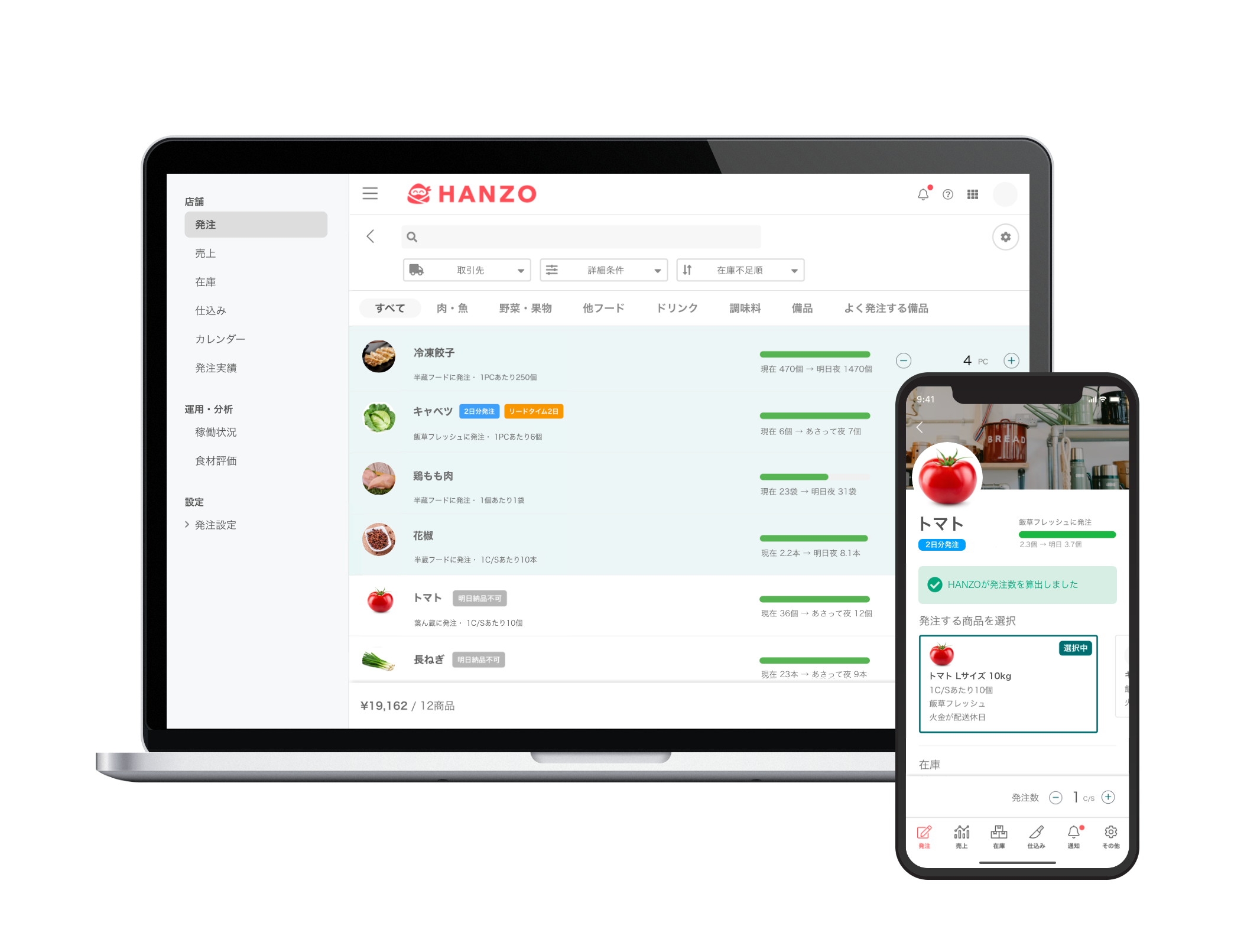 HANZOシリーズは飲食店のバックヤード業務をAIで自動化し、業務効率化・適正なコストコントロールに貢献するクラウドサービスです。