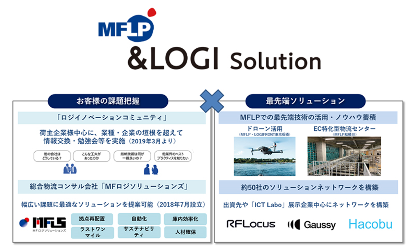 「MFLP &Logiソリューション」は、物流に関する課題に悩む企業に対し、ハード(物件・設備)とソフト(三井不動産の知見、物流コンサルティングファームであるMFLSのノウハウ、パートナー企業とのネットワーク等)の両面により、解決へと導くのはもちろん、その先の成長戦略をも支援するコンサルティングサービスになります。
