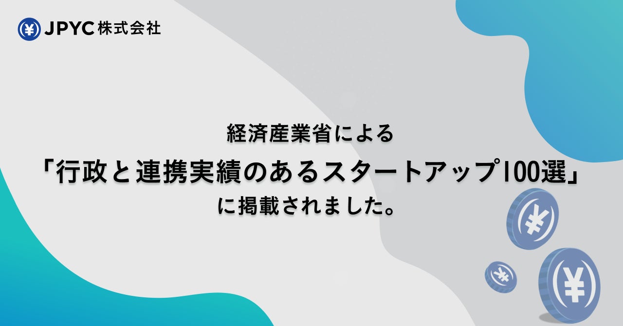 本カタログは、経済産業省がスタートアップと政府・自治体との連携促進に向けて、行政との連携実績のある企業を中心に事例を紹介するために制作したもので、JPYC社は「産業・ビジネス」の分野に掲載されました。