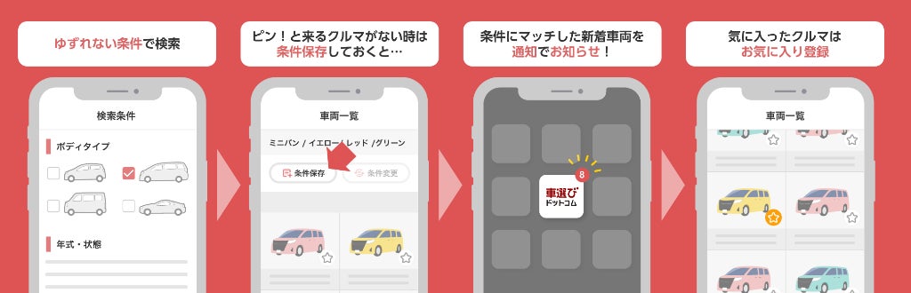 「車選びドットコムアプリ」がフルリニューアル!希望条件を保存すれば、マッチしたクルマを通知でお知らせ