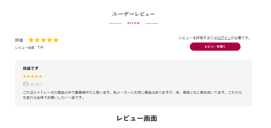 また、新しくレビュー機能が追加されたことで、商品購入に際して他のお客様が実際に商品を食べた際の感想などの口コミを参考にしていただけるようになりました。