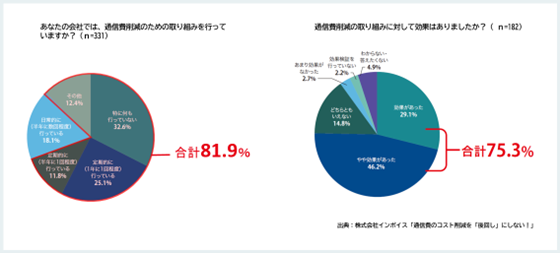 やろうと思ってもなかなか手につかない、通信コストの削減業務。実際に通信費のコスト削減について調査したところ、実に「80%以上」の企業が日常的に取り組めていないことが分かっています。一方でコスト削減に取り組んだ企業に確認すると「75%以上」の企業がその効果を実感できています。