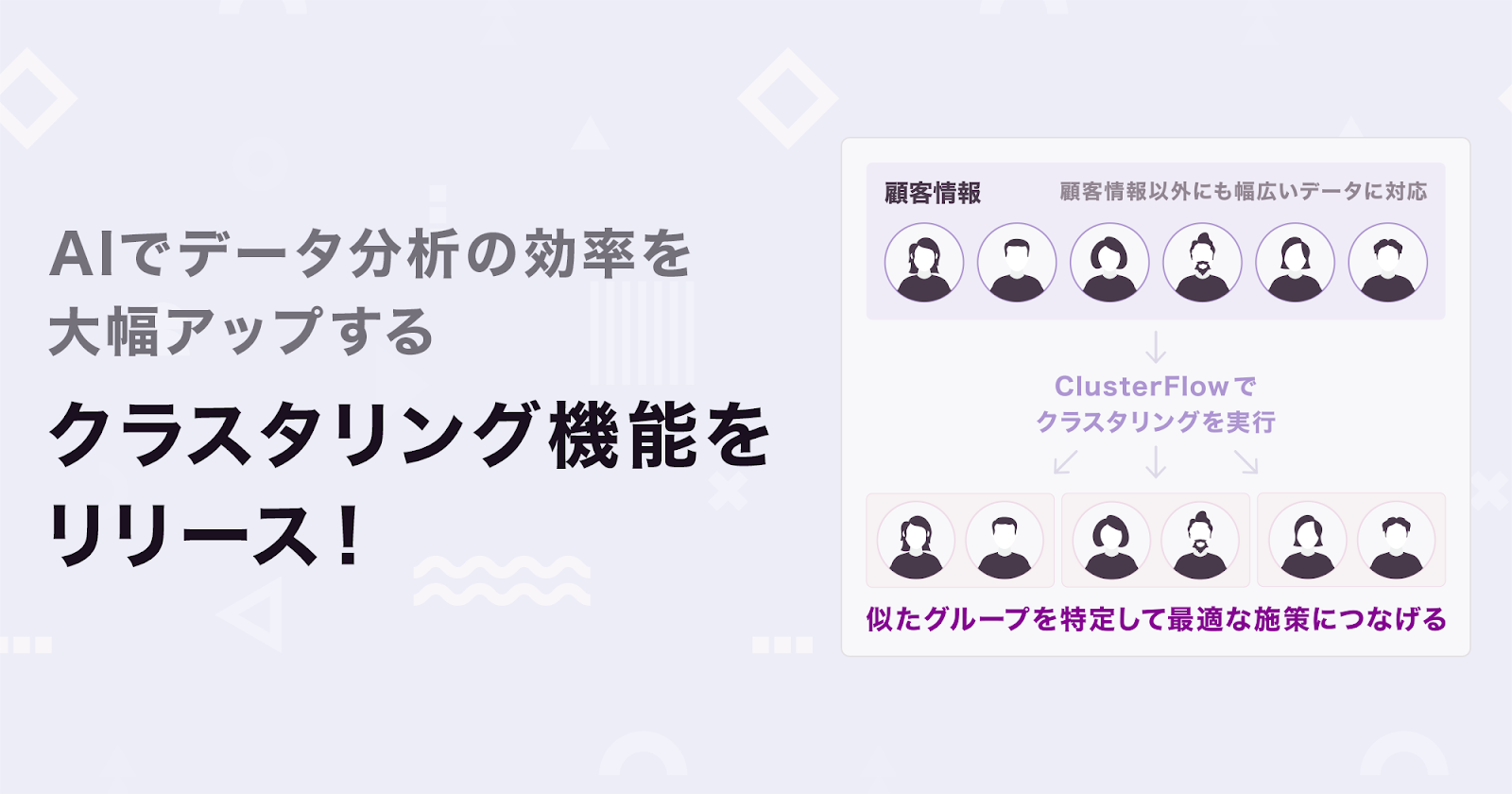 本機能は、ECサイトの顧客属性や商品の購買履歴などのデータをグループ分けすることで、嗜好や傾向の似たグループを特定することが可能です。これにより、最適なマーケティング施策の実行からAI学習用データの準備まで幅広い分野で活用できます。