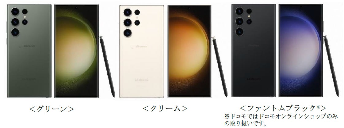 ※4 グリーン・クリームは256GBストレージ、ファントムブラックは512GBストレージでのご提供となります。ファントムブラックは、ドコモではドコモオンラインショップのみの取り扱いです。