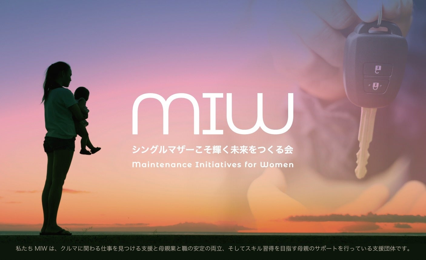シングルマザーこそ輝く未来をつくる会(MIW)は、クルマに関わる仕事を見つける支援と母親業と職の安定の両立、そしてスキル習得を目指す母親のサポートを行っている支援団体です。