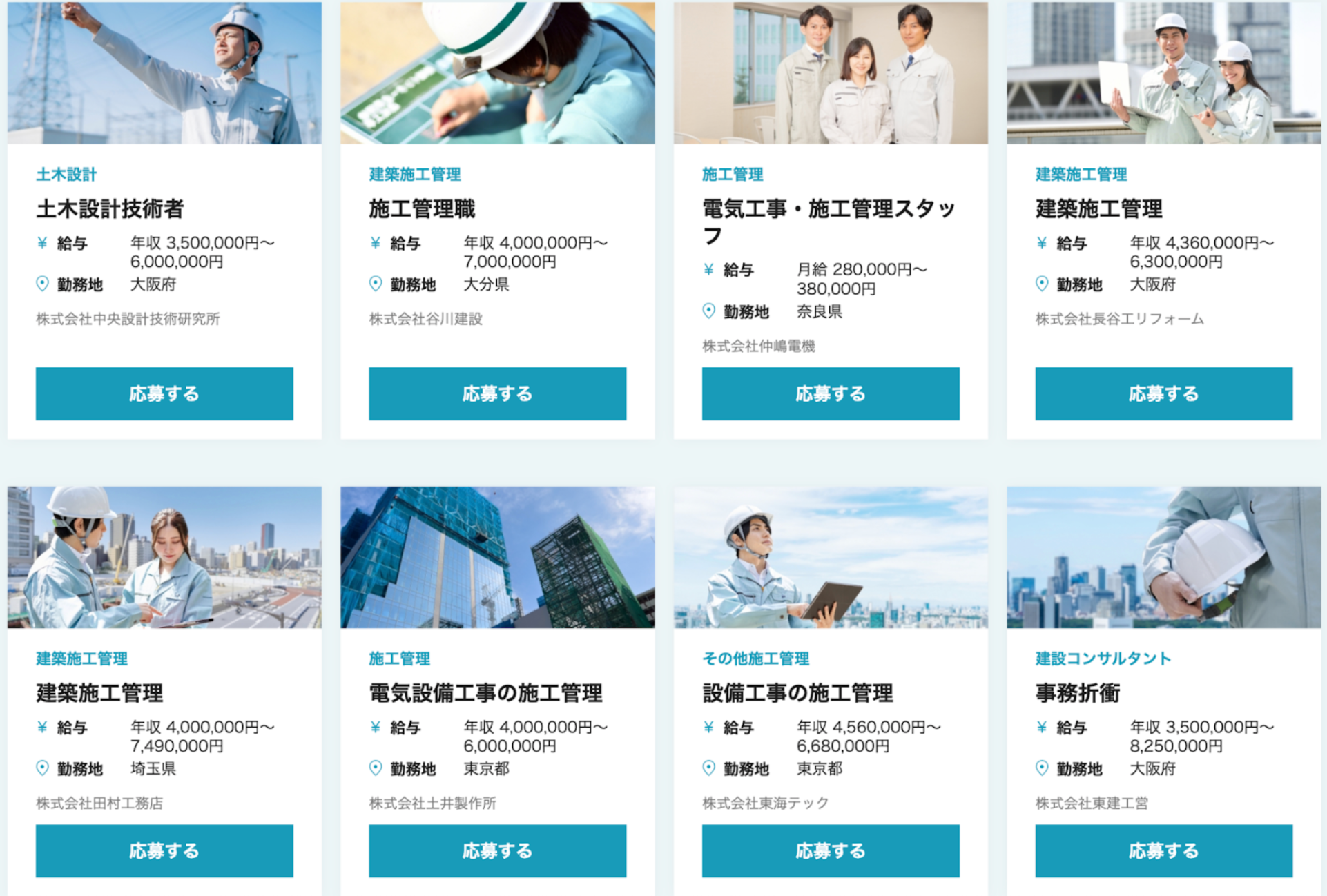 全国各地の建設業の求人情報や、建設業で転職をする際のノウハウなどを掲載しているので、