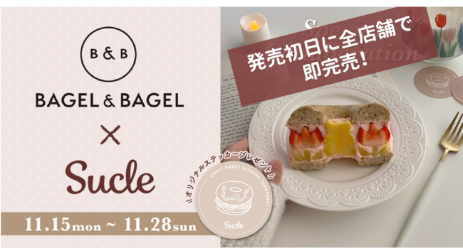 株式会社アルテゴ様によるBAGEL&BAGELとSucleがコラボし、若年層の新規顧客獲得を目的とした商品企画を支援させて頂きました。SNS映えするお花とくまをモチーフとしたベーグルを制作し、発売初日には全店舗にて即完売となりました。