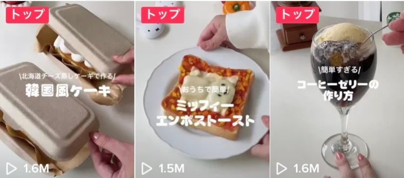 Sucle TikTokの動画内では100万回を超える再生回数の動画を続出しております。元々はSucle Instagramと同様に、コスメやグルメなど女性向けコンテンツ全般を発信していましたが、仮説検証の元、TikTokユーザーは1つのコンテンツに絞って発信をすることで、アカウントへの共感を得られやすいという結果となり、現在はスーパーやコンビニの食材を使って自宅で簡単に真似できる手作りアレンジレシピをご紹介しています。