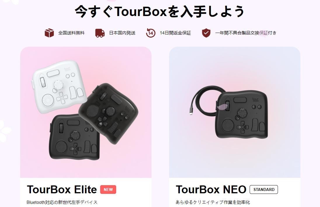 シリコンバレー発のTourBox Tech社が開発した『TourBox(ツアーボックス)』シリーズは、クリエイターのために誕生した全く新しいクリエイティブコントローラーです。現在はBluetooth対応の最新機種「TourBox Elite」及びスタンダード版の「TourBox NEO」の二機種が販売中です。直感的で効率の高い操作性、卓越したアクセシビリティ、多彩なカスタマイズ機能によって、全世界で高い評価を得ています。これまでに10万人以上のクリエイターによって愛用されています。