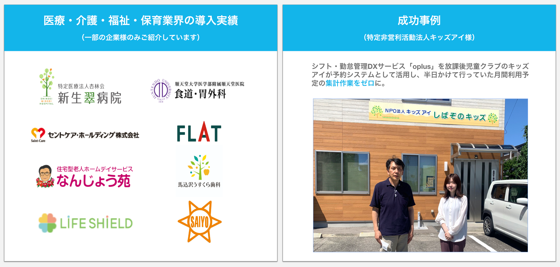 「oplus」(https://opluswork.com)は、シンプルで直観的な操作性でDXを実現し、ブラウザ・スマホ・アプリの全てに対応したシフト管理DXサービスです。100名までは無料で利用出来るため、紙・エクセルから脱却する上で、手始めに利用しやすいサービスになっています。